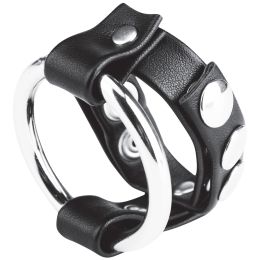 Schuif je penis door de metalen ring en wikkel de kunstleren bandjes om de basis van je penis en ballen. De zware metalen ring grijpt je beste delen stevig vast en voelt zwaar aan, terwijl hij je helpt om het langer vol te houden en een hardere erectie te krijgen.