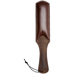 Een stijlvolle paddle van echt nubuckleer, waarmee je je partner kunt uitnodigen in het duistere en opwindende universum van BDSM.