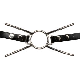 Op de ring zijn vier metalen snorharen gemonteerd die bij gebruik dicht bij je gezicht zitten. Deze snorharen zorgen ervoor dat de O-ring niet in je mond verdwijnt.