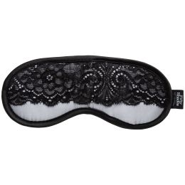 Deze glinsterende zilveren satijnen blinddoek met delicate kanten rand, is het perfecte accessoire voor sensuele bondagesessies met je partner. Het maakt deel uit van de Play Nice-productreeks van Fifty Shades of Grey.