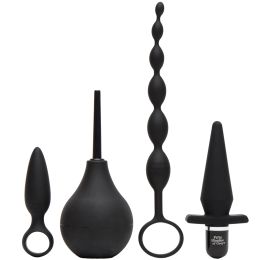 De set bestaat uit vier verschillende waterdichte delen, zodat je je kunt verdiepen in de diepten van anaal spelen. Laat je inspireren door de kinky Fifty Shades-sfeer en verken het allemaal in je eigen tempo.