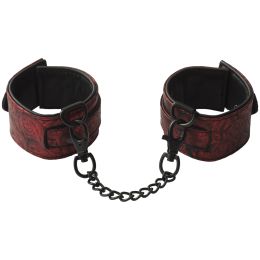 De zachte boeien van kunstleer zijn omkeerbaar met aan weerszijden een zwart of rood ontwerp met rozen waaruit je kunt kiezen. Ze zijn verstelbaar zodat ze de meeste mensen passen, en met de gesp kun je de handboei naar wens aanpassen.