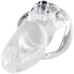 Betreed het fascinerende universum van intieme onderwerping met de V5 Maxi doorzichtige kuisheidskooi van HolyTrainer. Voorzien van een ingebouwd sluitmechanisme en het extra stevige materiaal van bio-hars is ideaal voor langdurig dragen. Jouw lid zit met dit speeltje veilig opgesloten in hemelse gevangenschap.