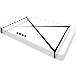 De zwarte nylon banden passen op de meeste matrassen en vormen een kruis in het midden als een kinky BDSM-kruis.  Er zijn stevig gemonteerde praktische D-ringen op 8 plaatsen op de bevestigingsset voor variatie in het spel.