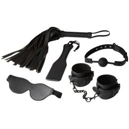 De set bestaat uit vijf delen die kunnen worden gebruikt voor straf, vastmaken en zintuiglijk genot. Alle onderdelen zijn bekleed met hoogwaardig zwart imitatieleer.