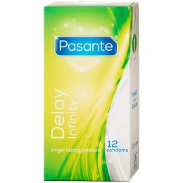 De Infinity Delay condooms van Pasante helpen bij het vertragen van de mannelijke ejaculatie, met behulp van een speciaal glijmiddel dat in en op de condooms wordt gebruikt. Dit glijmiddel maakt de penis minder gevoelig.