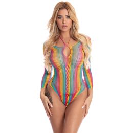 Ergens boven de regenboog laat een kleurig straaltje je stralen in dit veelkleurige bodysuit met lange mouwen van Pink Lipstick.