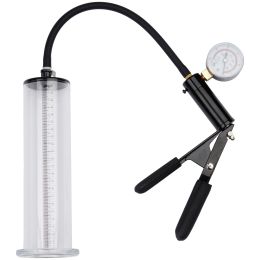 Use a little lube, place your member inside the transparent cylinder and use the pump to create a vacuum. Keep track of your potent growth as you pump with the measurement markings and show off your progress.