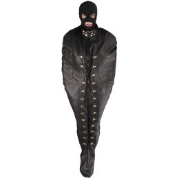 Speel je wildste fetisjfantasieën uit met de spannende slaapzak van Strict Leather. Het is een leren tas, die het hele lichaam effectief vastmaakt en onder controle houdt, voor volledige overgave.