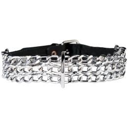Pas de omtrek aan met de gespsluiting en bepaal of je een losse halsband wilt of een strakke choker. De combinatie van leer en metaal straalt erotiek uit, perfect als finishing touch voor kinky fetisj outfits of om je wilde kant te laten zien.